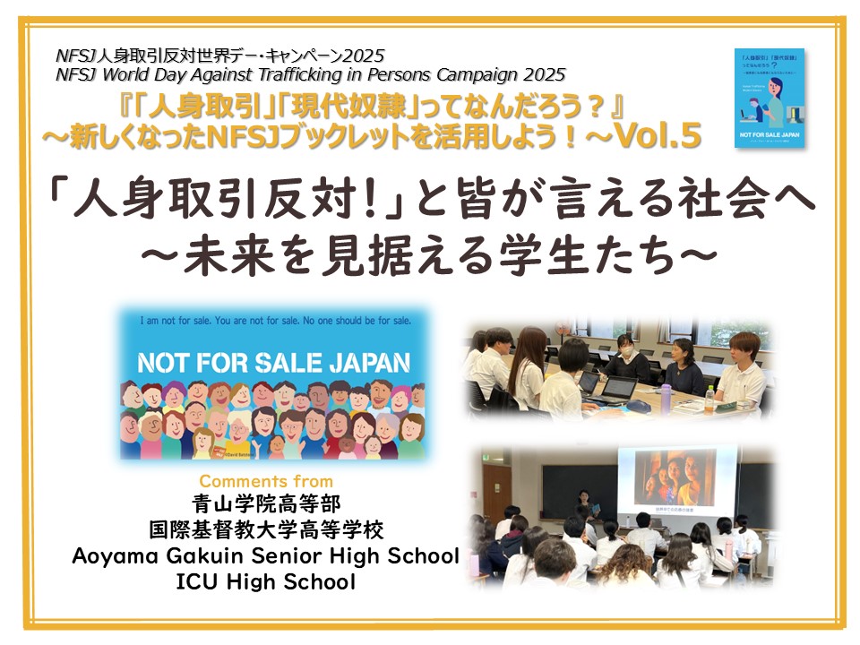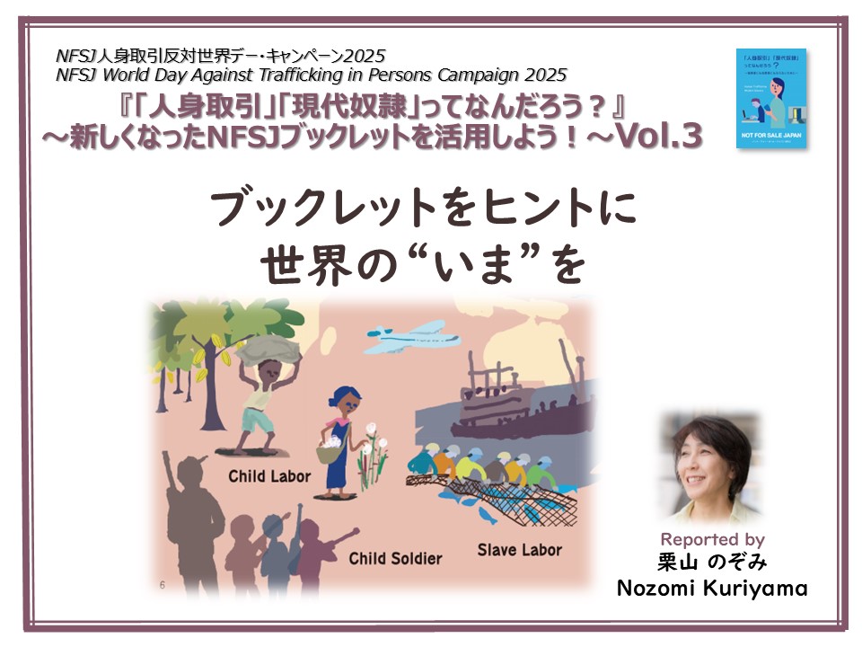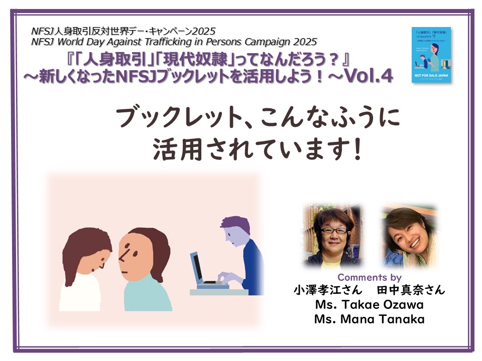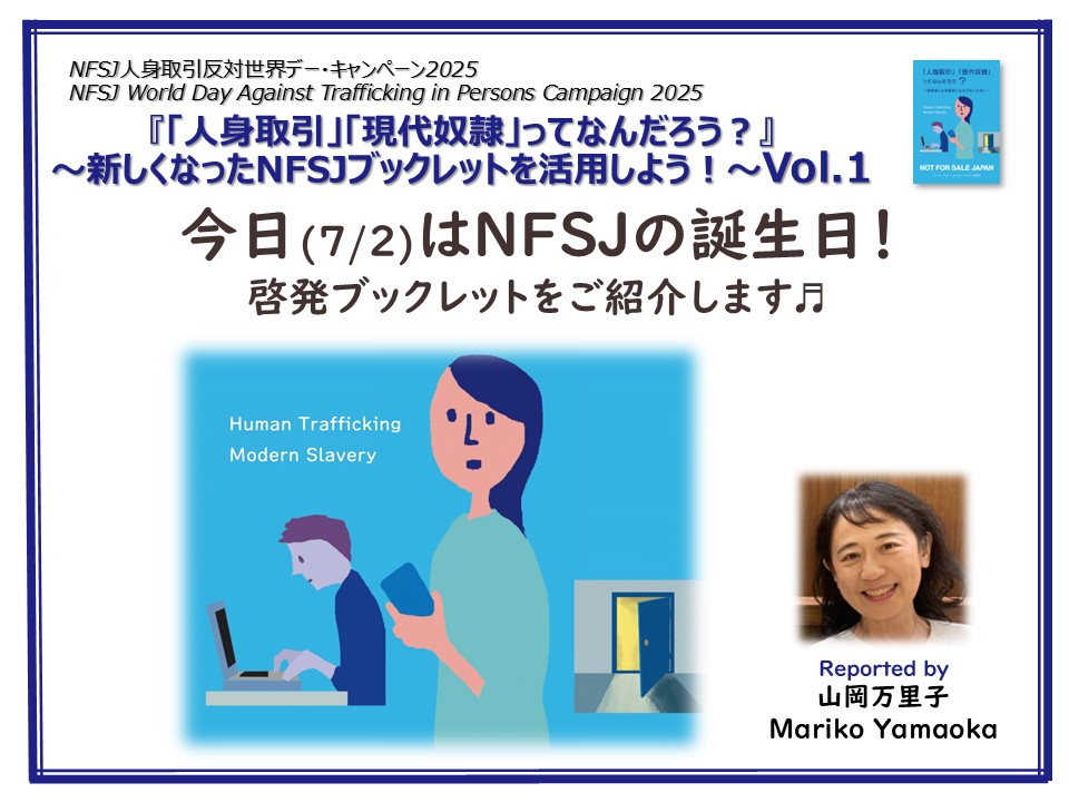 2025年度の人身取引反対世界デーキャンペーンでは、NFSJスタッフが週替わりで本ブックレットをご紹介します。ブックレットの使い方や制作者の思い、推薦の言葉など、ぜひチェックしてみてくださいね。(2025年7月)